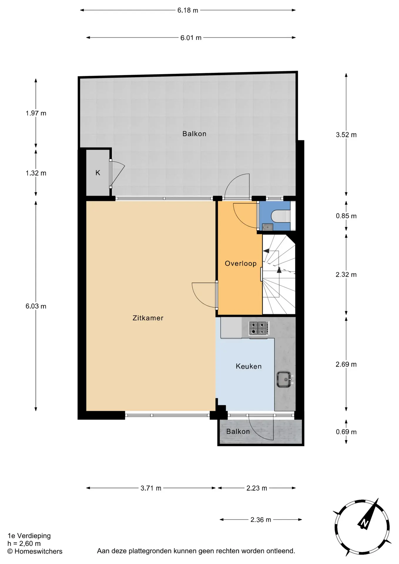 Bovenstaande informatie is door ons met de hoogst nodige zorgvuldigheid samengesteld. Door ons wordt echter geen enkele aansprakelijkheid aanvaard voor enige onvolledigheid, onjuistheid of anderszins, dan wel de gevolgen daarvan. Alle opgegeven maten en oppervlakten zijn indicatief. De woning is gemeten met gebruikmaking van de Meetinstructie, die is gebaseerd op de normen zoals vastgelegd in NEN 2580. De Meetinstructie is bedoeld om een meer eenduidige manier van meten toe te passen voor het geven van een indicatie van gebruiksoppervlakte. De Meetinstructie sluit verschillen in meetuitkomsten niet volledig uit, door bijvoorbeeld interpretatieverschillen, afrondingen of beperkingen bij het uitvoeren van de meting. Hoewel wij de woning zorgvuldig hebben opgemeten, wordt noch door ons kantoor, noch door de verkoper enige aansprakelijkheid aanvaard voor afwijkingen in de opgegeven maten. Koper wordt in de gelegenheid gesteld om de opgegeven maten te (laten) controleren.
