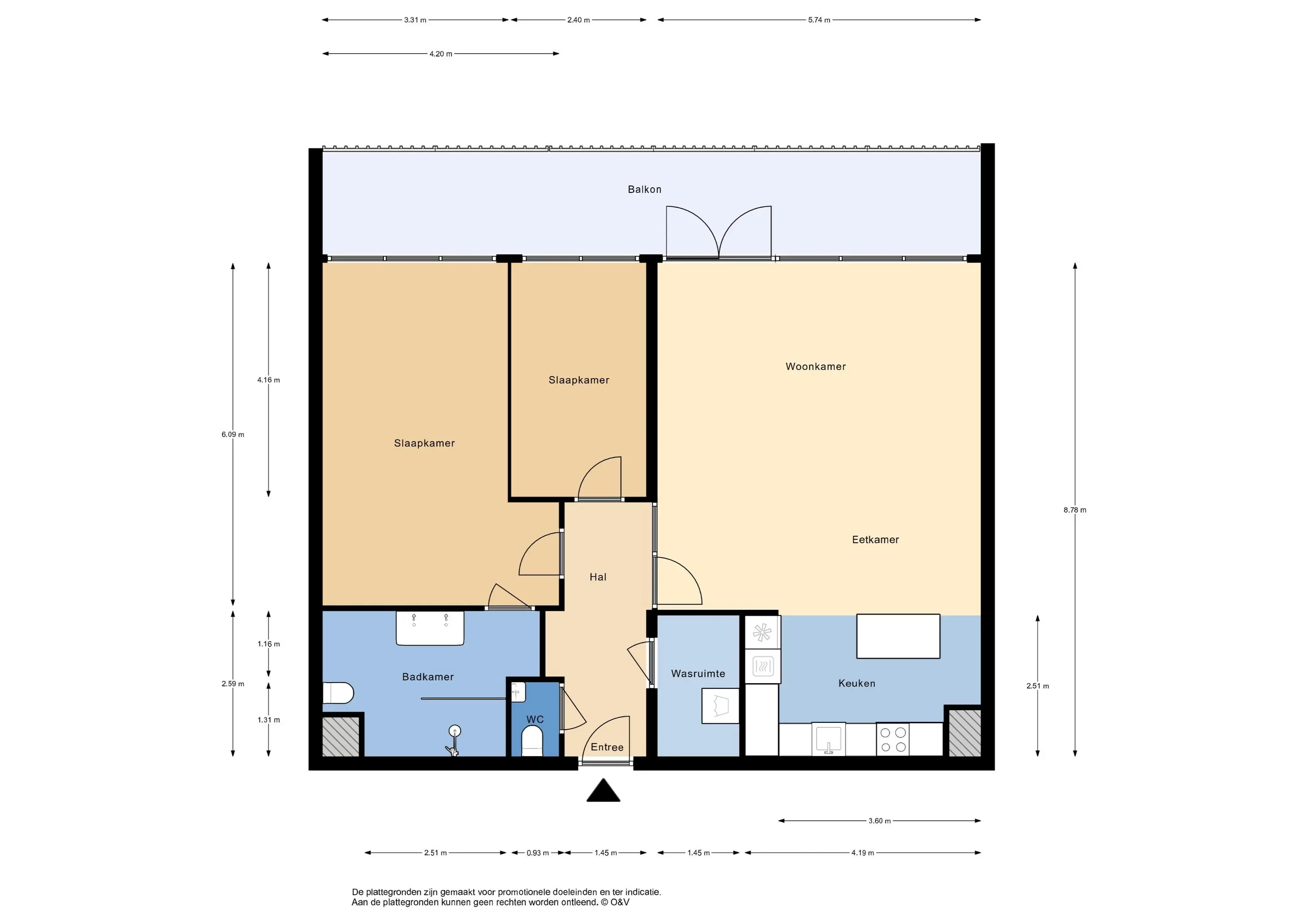 In de hal bevindt zich tevens een praktische inpandige berging met opstelplaats voor wasmachine, droger en mechanische ventilatie.