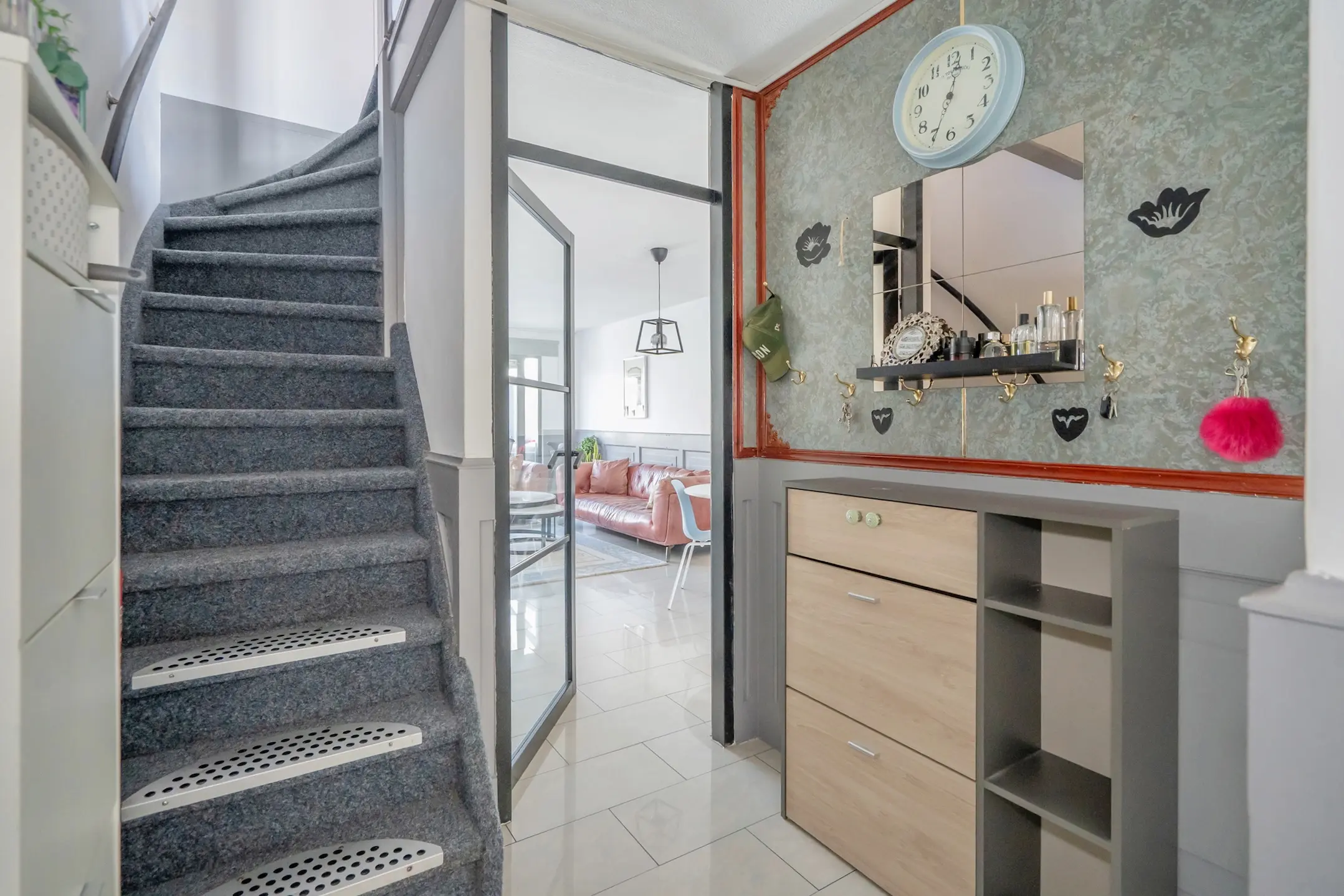 De woning is gelegen aan een kindvriendelijke, autovrije straat en er zijn verschillende winkels op loopafstand. Daarnaast zijn er in de buurt verschillende scholen en openbaar vervoer.